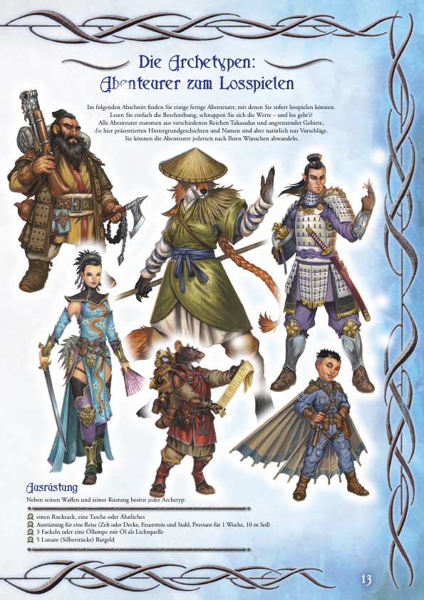 Den Schnellstarter 2026 ziert das Cover des Zhoujiang-Bandes, und das hat einen Grund: Nicht nur spielt das Abenteuer „Nebenakt A38“ in der Kranichprovinz, auch alle sechs in dem Band enthaltenen Archetypen stammen aus Regionen in der näheren Umgebung (Zhoujiang, Kintai, Kungaitan, Sadu).